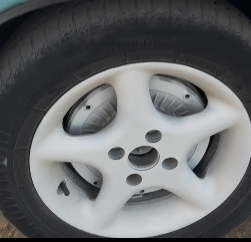 Продам литые диски Разболтовка 4×100, комплект 4 шт. Белые, 5-спицевые, хорошее состояние, ровные без трещин и сварки. Два колеса с летней резиной Два колеса с зимней резиной
